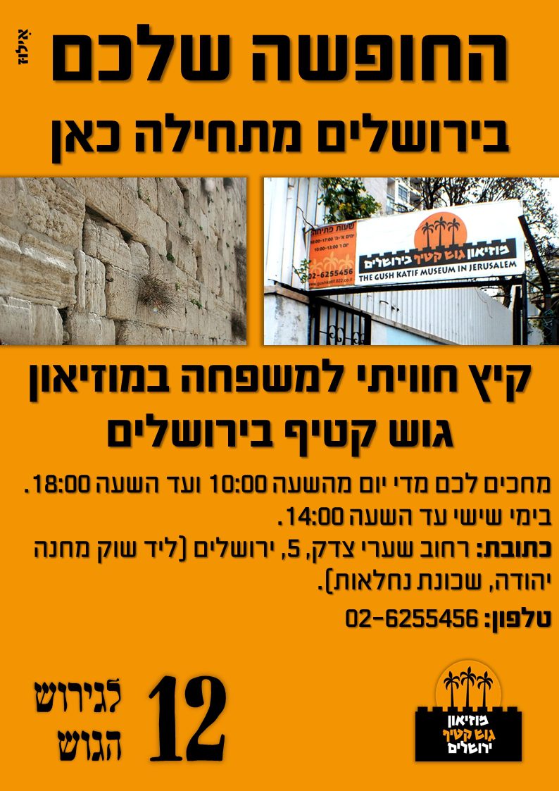 אירועי הקיץ במוזיאון גוש קטיף בירושלים בסימן "והגדת לבנך"